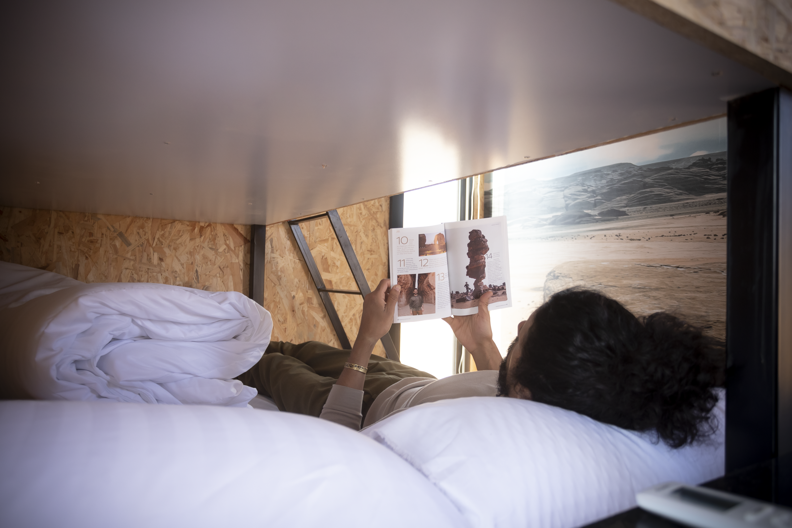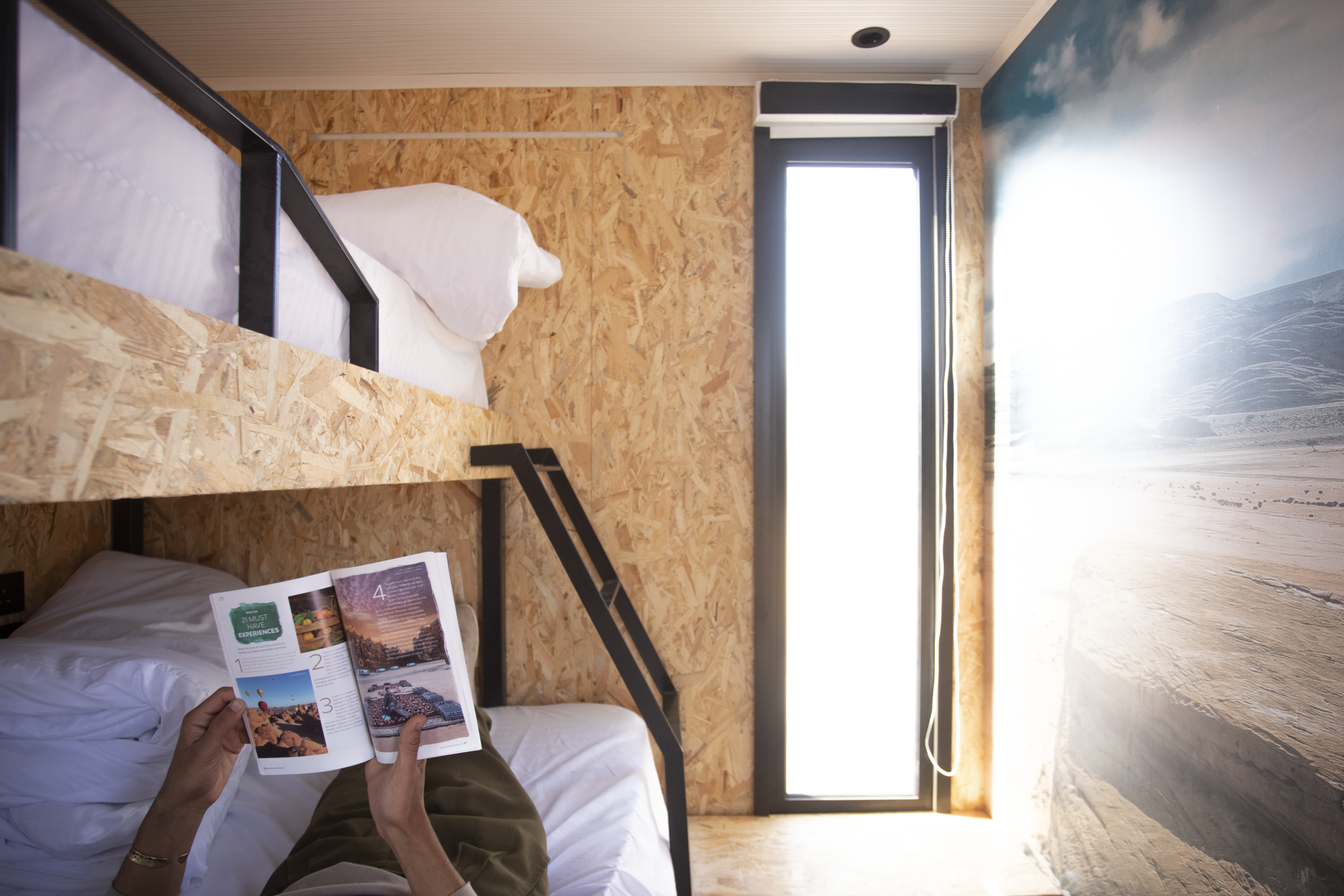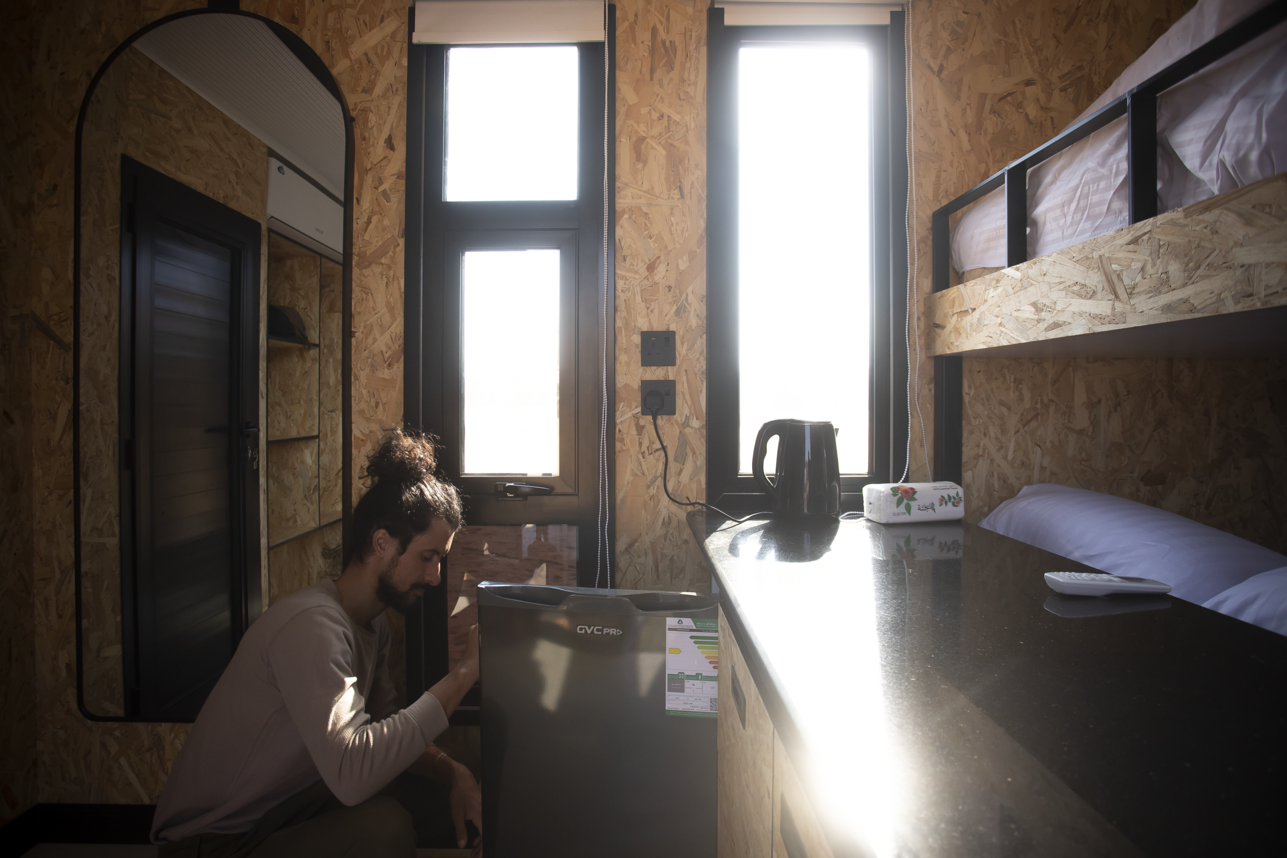 Pangaea’s private cabins offer visitors to AlUla the opportunity to stay at PANGAEA Center and experience comfortable accommodations surrounded by the tranquility of nature. The cabins feature a modern and elegant design and are equipped with all modern amenities, including a private bathroom and air conditioning. The center is home to numerous varieties of palm trees, and guests can also enjoy breathtaking views of the Sharaan Nature Reserve.